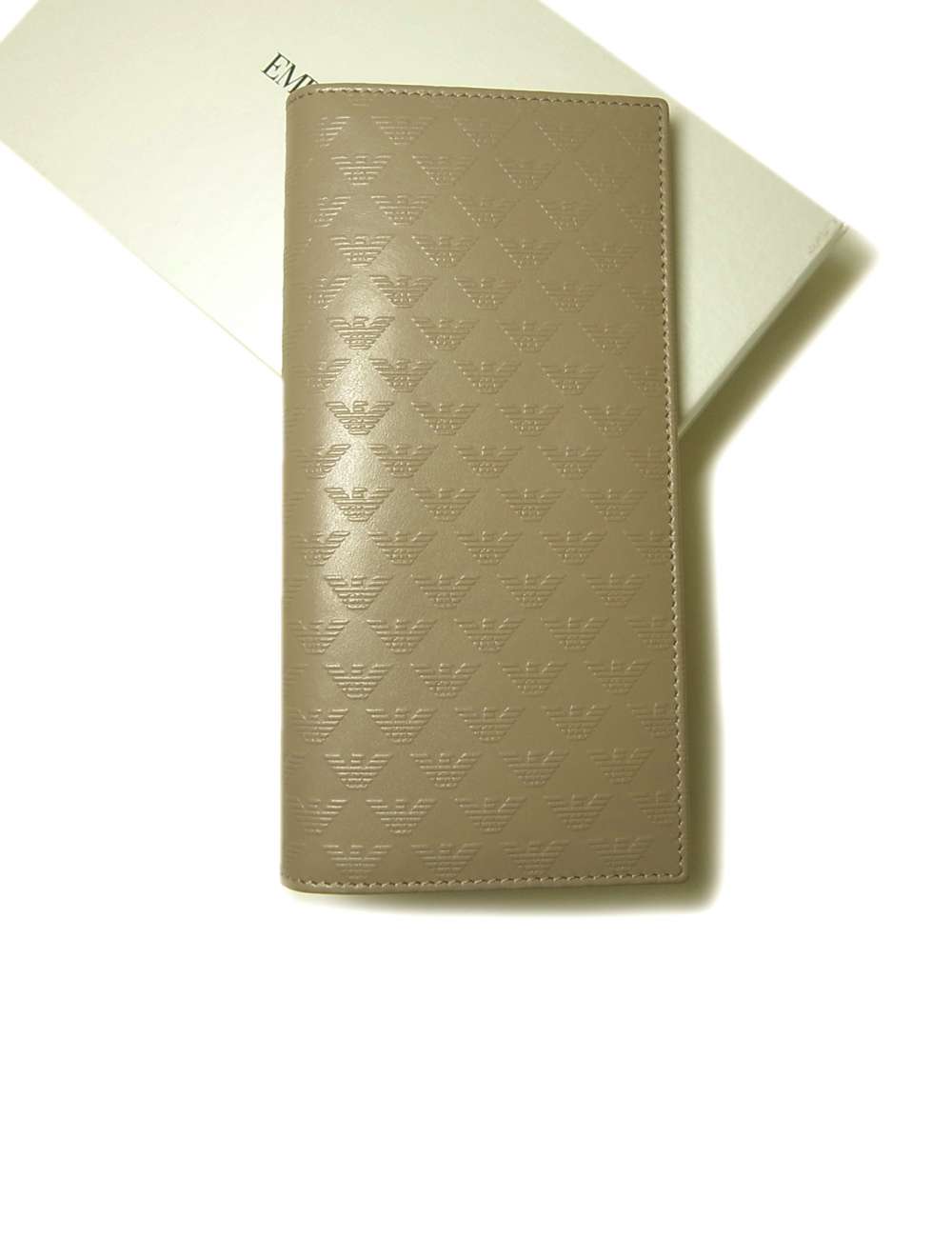 上質の牛革全体にアルマーニのシンボル、イーグルがロゴグラムされたデザイン。柔らかな色味のベージュ。ビジネスの場でも品良く爽やかな印象を与えます。