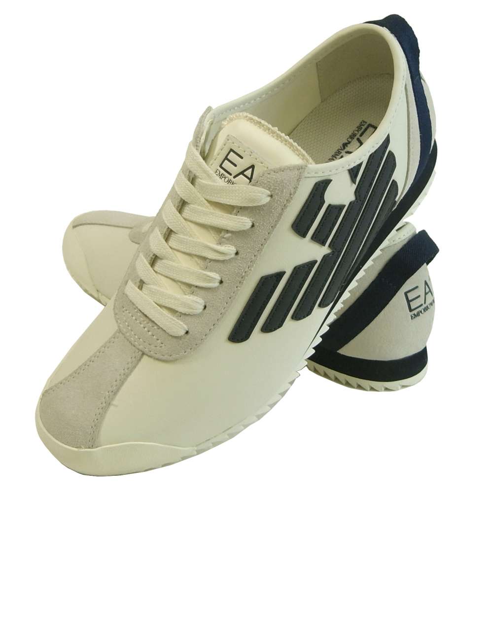 踵、シュータンにEA7のロゴマーク、サイドにはイーグルのレザーパッチがあしらわれています。