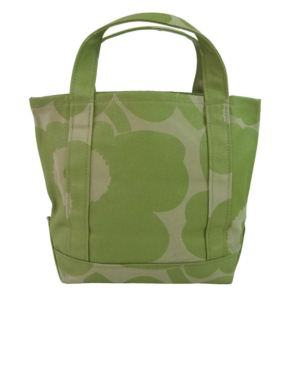 | カラー | Pieni Unikko(ピエニ ウニッコ柄 ケシの花) ☆デザイナー:Maija Isola グリーン×グリーン *裁断部分により、1点1点柄の出方が異なります。 何卒予めご了承くださいませ。 |