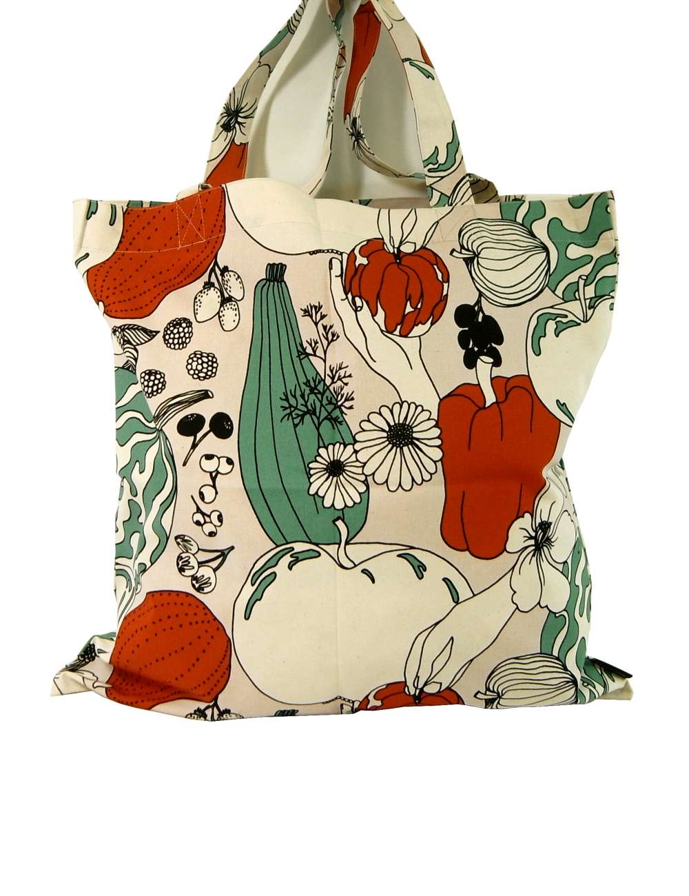 | カラー | Tarhuri&Vihannesmaa(タルフリ&ヴィハンネスマー 庭師&菜園) ☆デザイナー:Maija Louekari コットン×グリーン×レッド |