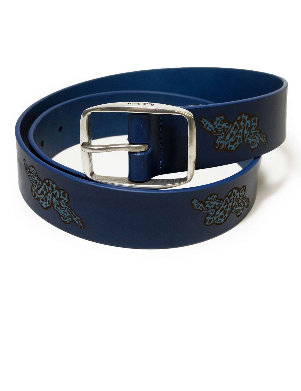 上質のスパニッシュレザーにヘビのデザインが施されたユニークなベルトです。