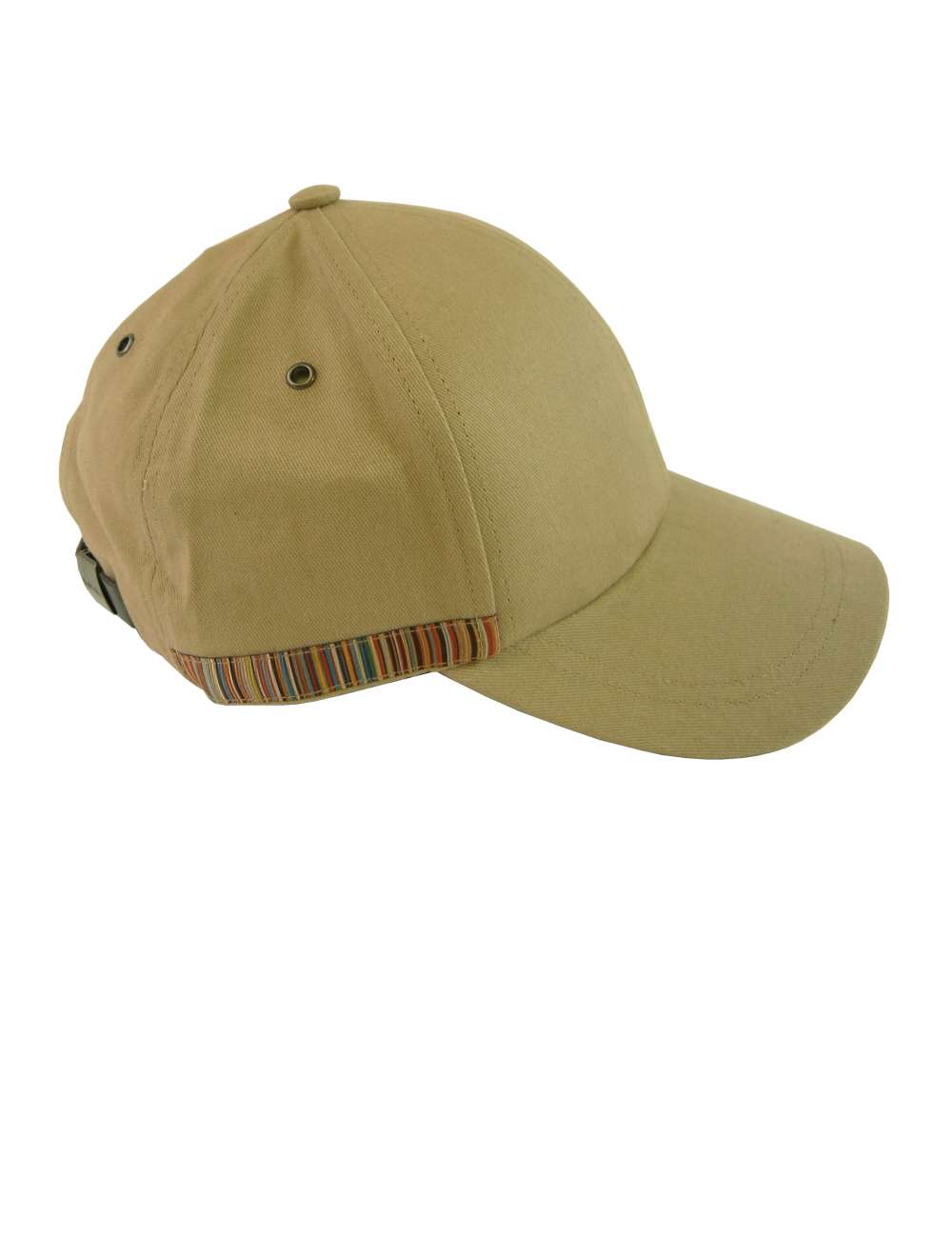 ポールスミス2022年コレクション。シンプルなスタイルに、さりげなくシグネチャーストライプがあしらわれたデザイン。カジュアルにも綺麗目にもコーディネートしやすいキャップです。