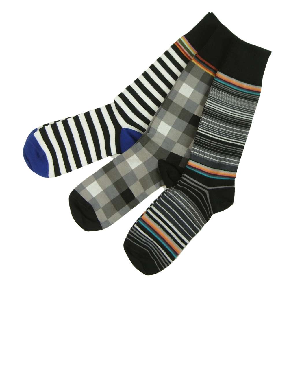 異なるパターンのストライプ柄が2足とチェック柄が1足の3足セットです。