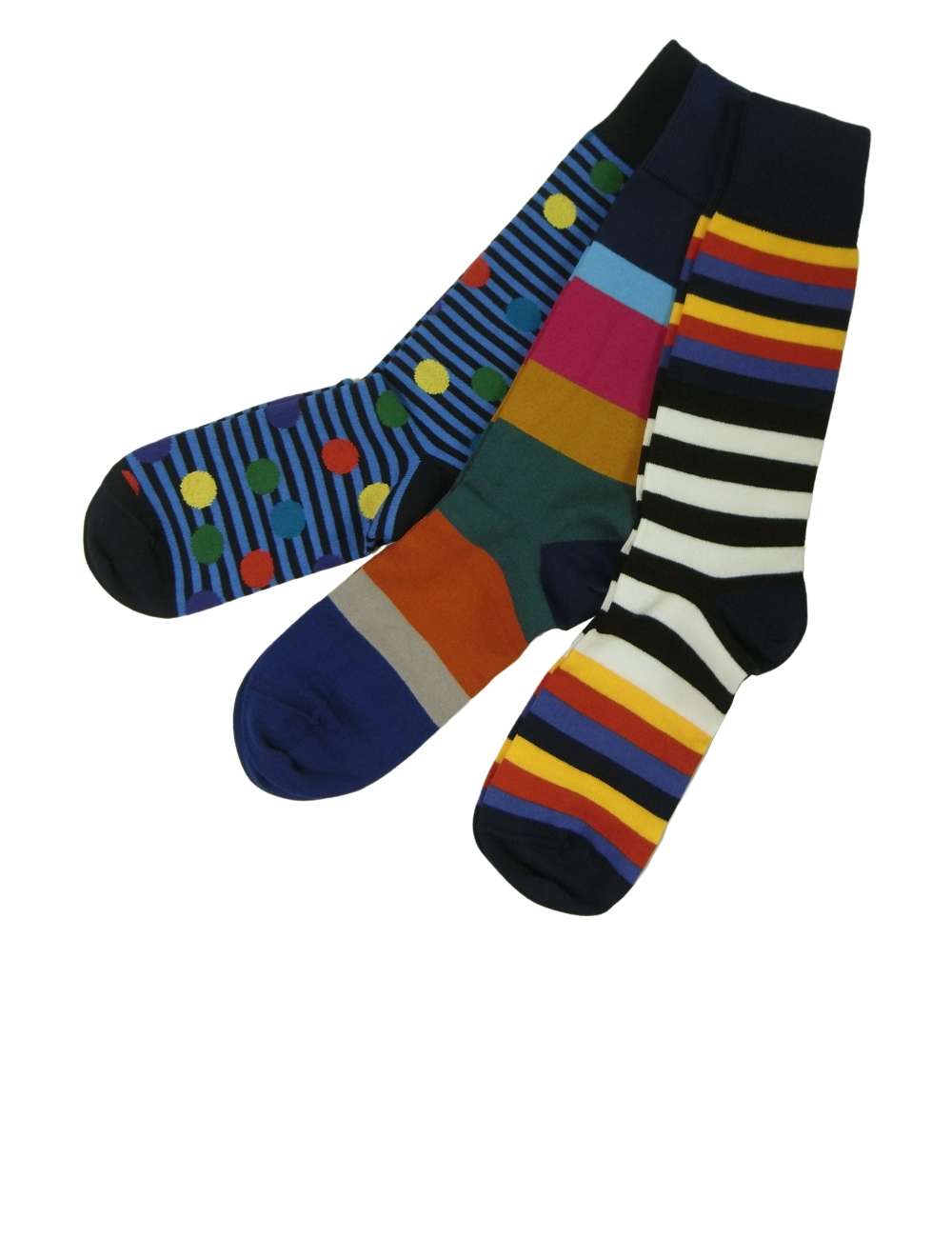 異なるパターンのストライプ柄が2足と、ストライプ&ドットのミックス柄が1足の3足セットです。