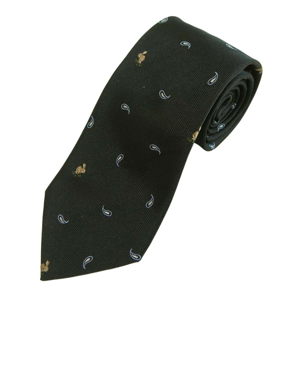 シックなネイビーカラーの縦畝シルク生地に、可愛らしいうさぎがエレガントなペイズリーと共に織り込まれた洗練のデザインです♪愉快なカウボーイプリントの生地と、象徴的なストライプカラーのループをコンビネーション。