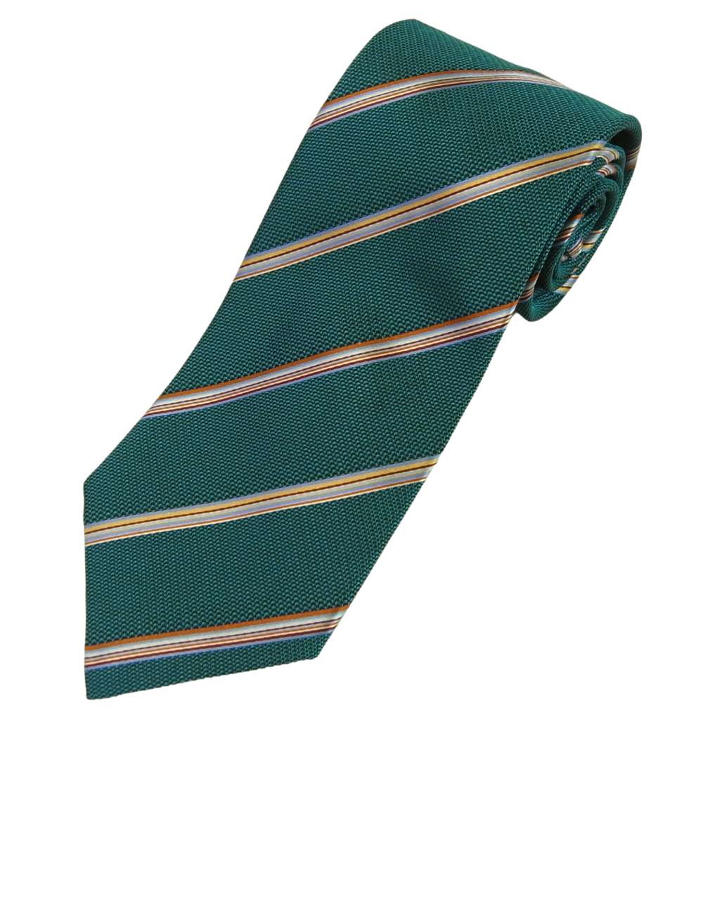 ターコイズカラーのジャガードシルクに2パターンのマルチストライプのシルクラインが交互にデザインされたお洒落なネクタイ。