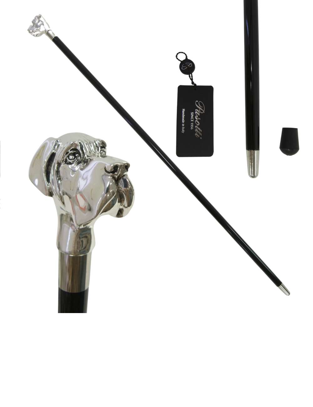 ブラックコートされたウッドシャフトに、愛くるしいラブラドールの装飾が美しいハンドル。
