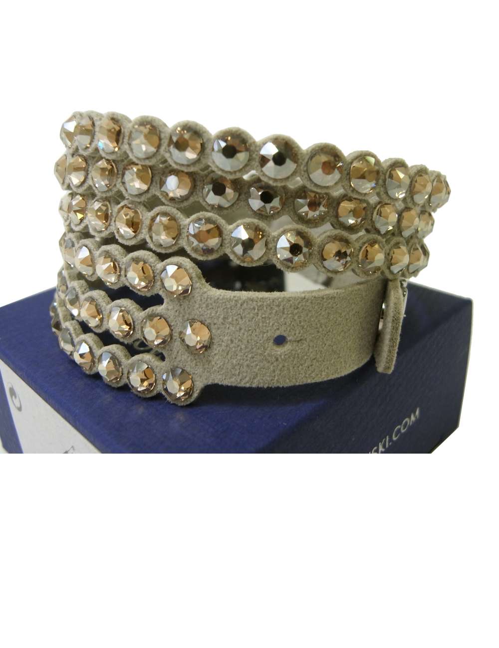 肌触りの良いスウェード調のレザーに、クリスタルが惜しみなく散りばめられています。