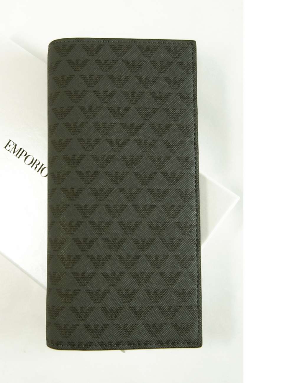 アルマーニの大人気完売ウォレットが限定数再入荷!外側はイーグルのロゴマークがプリントデザインされたPVCコーティングレザー。