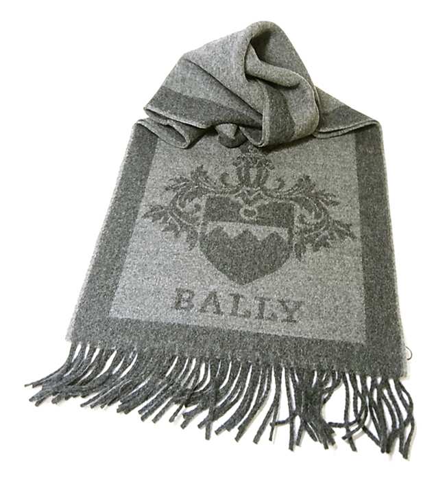 バリーのエンブレムとブランドネームがデザインされたクールなマフラー。