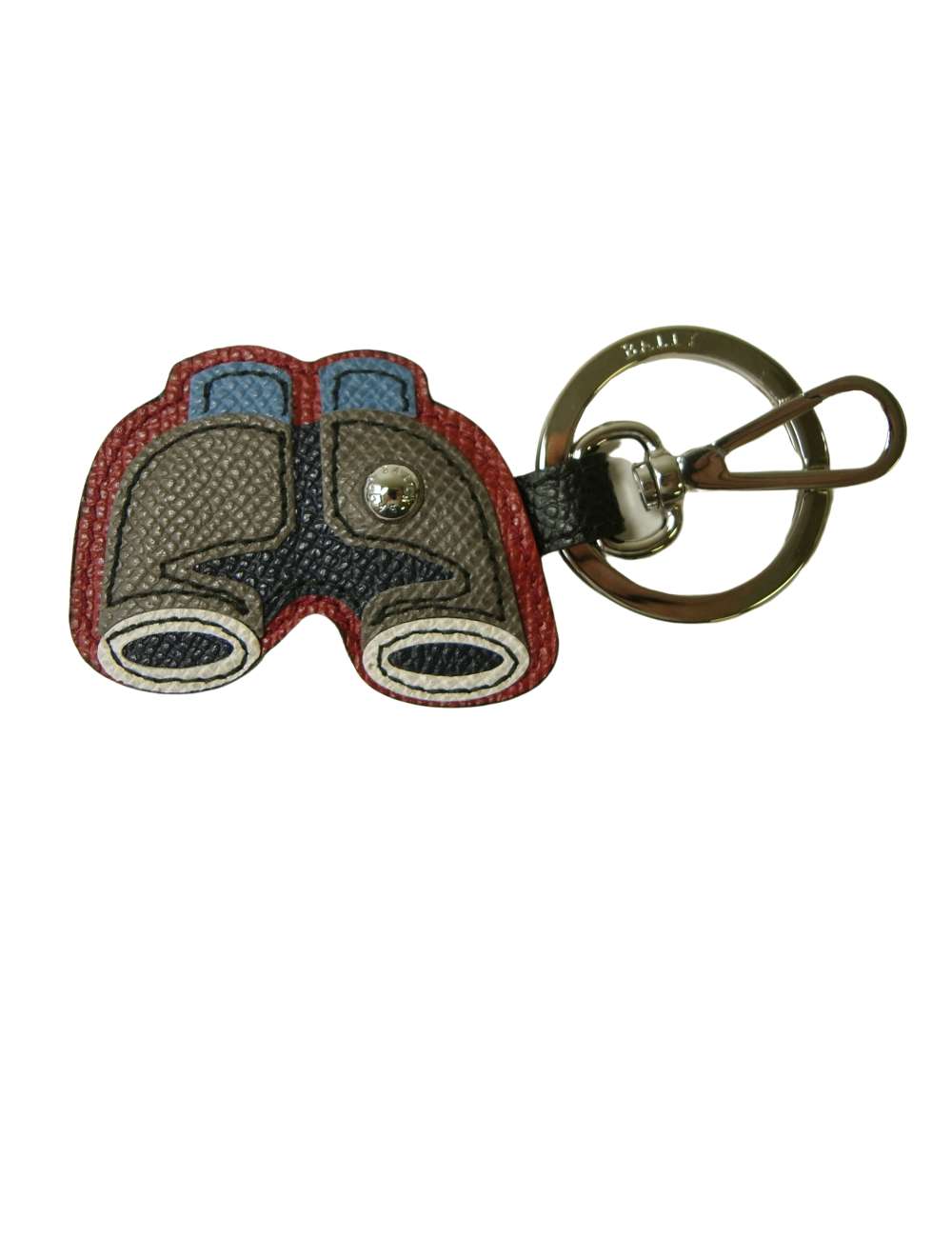レザーをパッチワークして作られた双眼鏡のチャームがユニークでお洒落なバリーのキーホルダー。フック付きでデニムのベルトループやバッグなどにも引っ掛けて使えます。