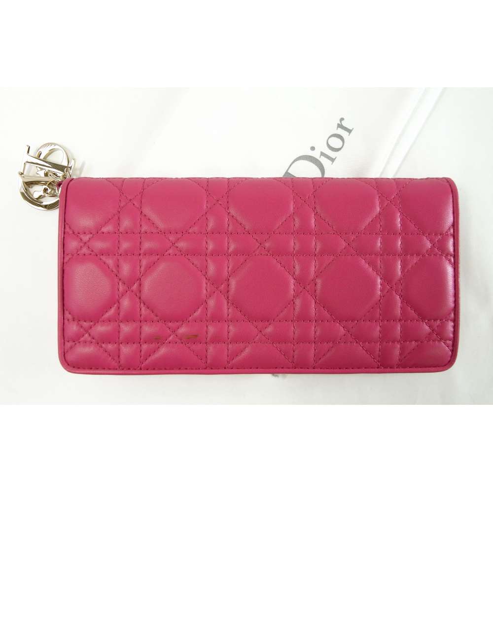 レディディオールラインのキュートなウォレットです♪ムッシュ・ディオールの大切なお客様を招くサロンに置かれていた籐の椅子の編み目からインスピレーションを得て誕生した、ブランドを代表し愛され続ける伝統的なデザインです。