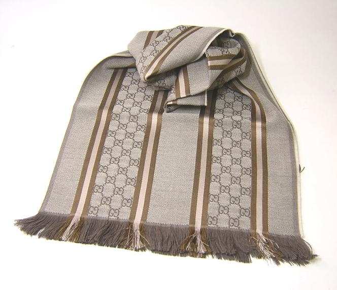 上質のウール織り全体に織り込まれたGG柄と、艶やかなシルク織りのラインが洗練されたデザイン。