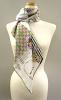 一番ポピュラーな大判の90cm×90cmサイズは楽しみ方が豊富!スタンダードなスカーフとしての使い方の他に、バッグの持ち手のアクセントに、腰に巻いてベルト使いに、ファッションのトップス、他たくさんのアレンジが可能です。