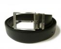 ブラックとダークブラウンのスムースリバーシブルレザーに、ピンタイプのバックルとプレートタイプのバックルがセットに。