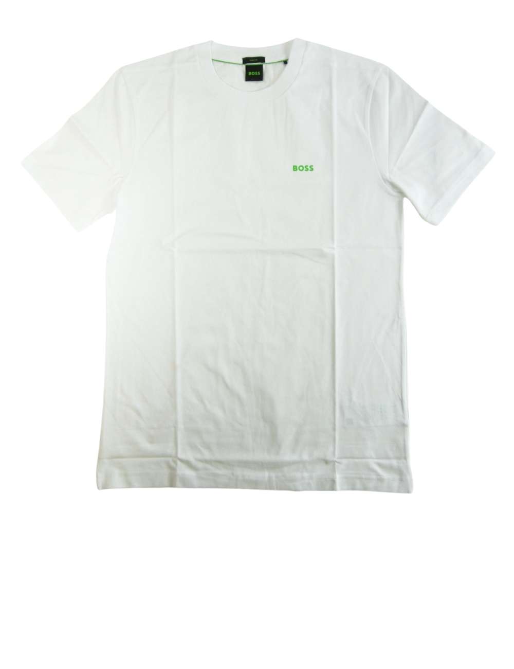 胸元に控えめなBOSSのロゴがあしらわれ、シンプルに着こなせる一枚です。