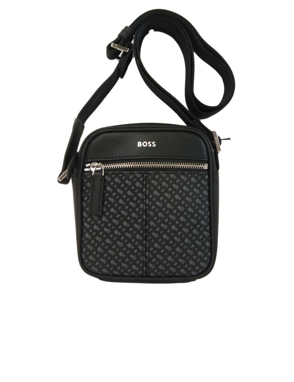 BOSSのイニシャルBのモノグラムが全体に施されたスタイリッシュなデザイン。