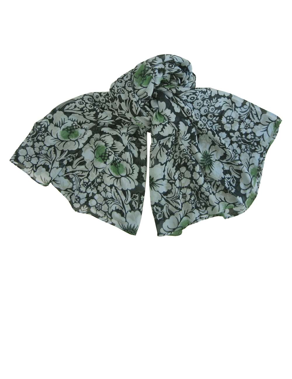 シックで上品な花柄のストールが、スタイルを華やかに彩ります。