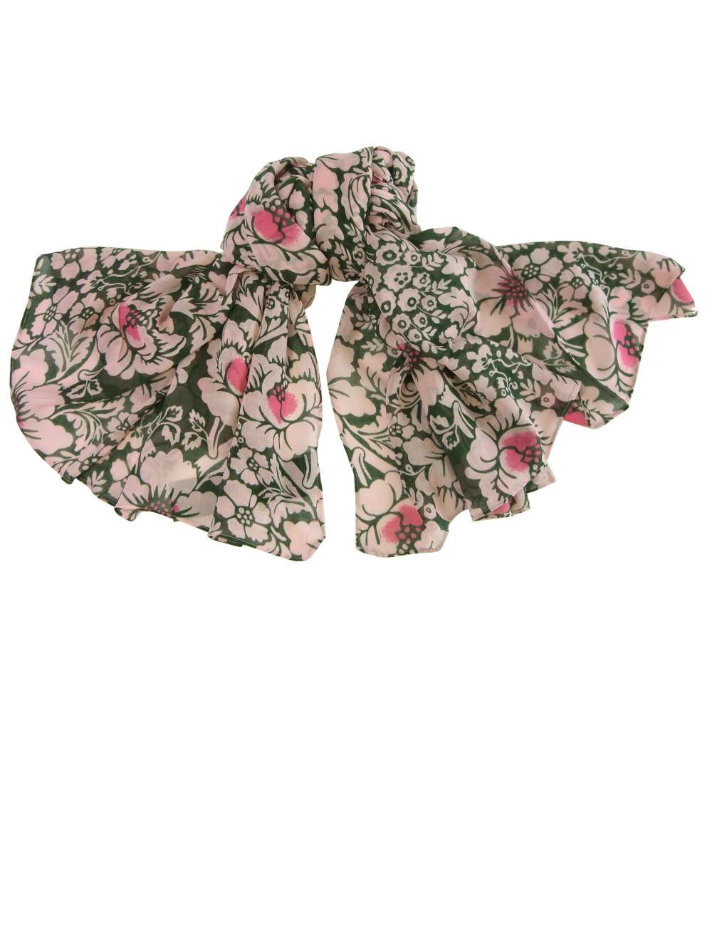 シックで上品な花柄のストールが、スタイルを華やかに彩ります。