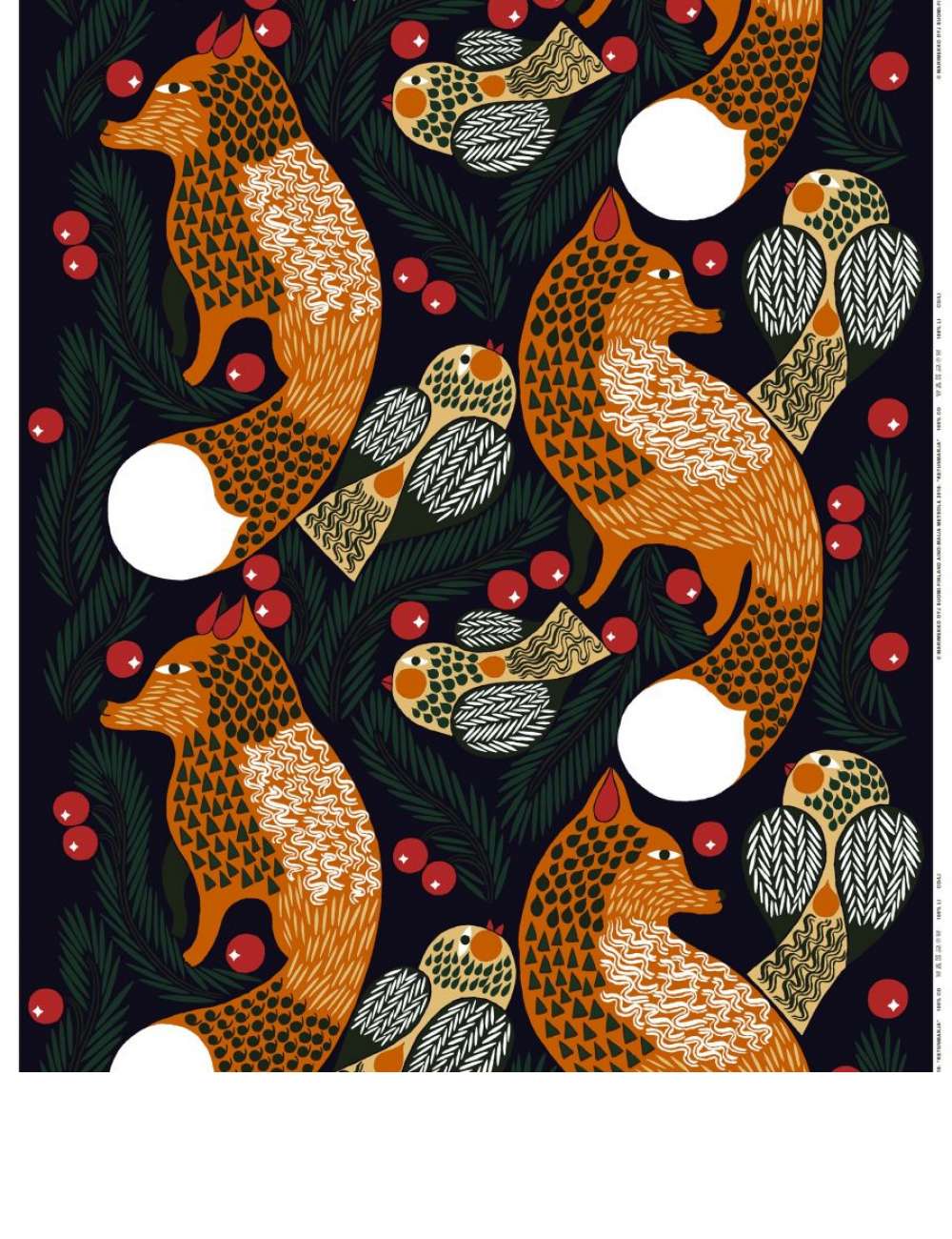 2021年秋冬新作「Ketunmarja」は、夕暮れ時、イチイの木に留まる小鳥たちに向かって忍び寄るキツネの姿を描いています。