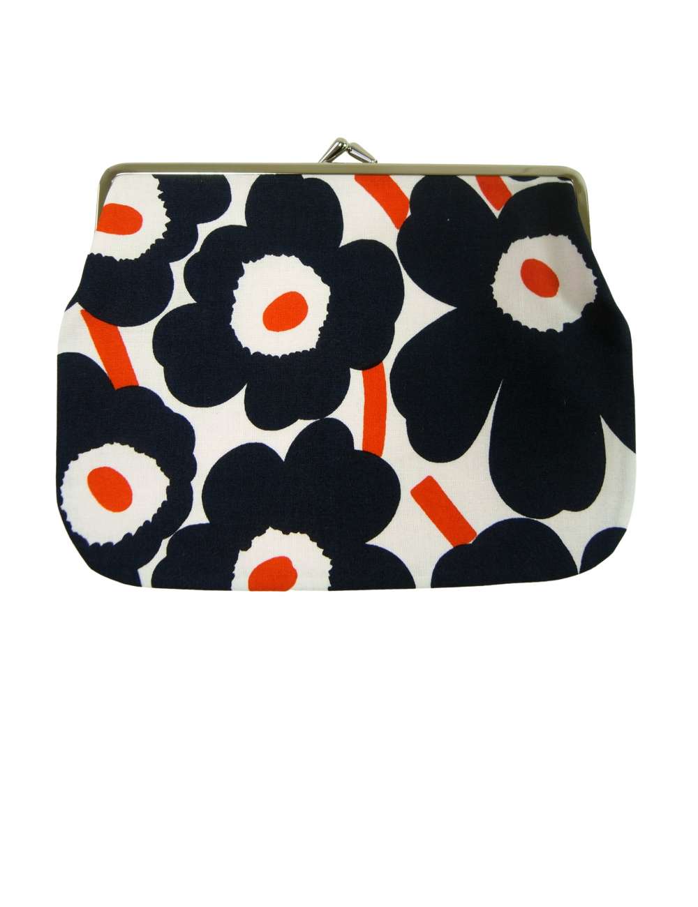 | カラー | Mini Unikko(ミニ ウニッコ 小さなケシの花) デザイナー:Maija Isola ホワイト×ネイビー×オレンジ |