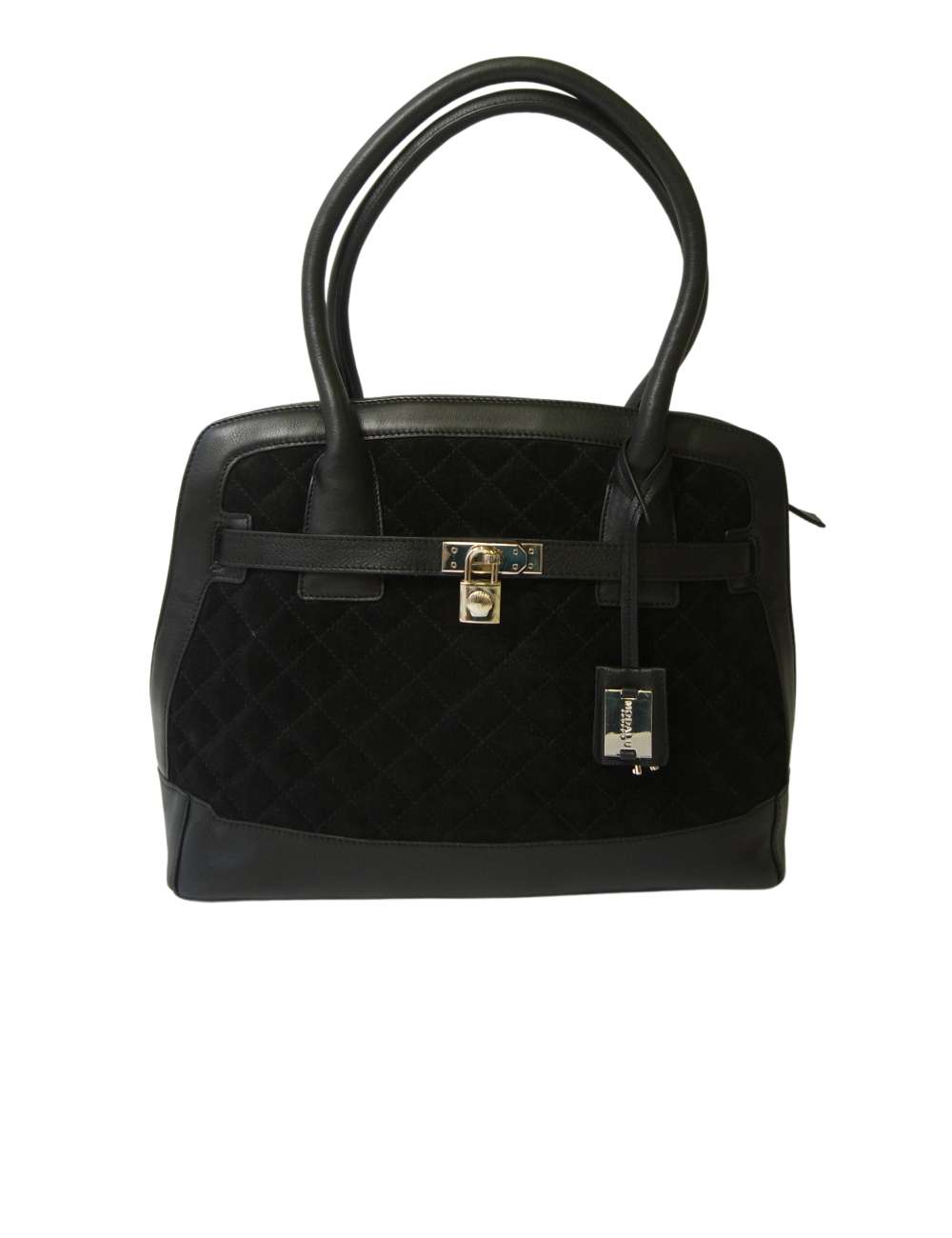 ブラックのキルティングデザインのファブリックをメインに同色のスムースレザーのパイピング。