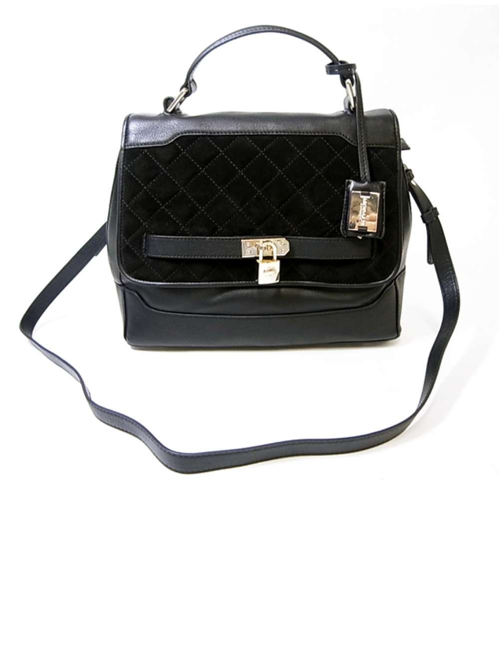 「KRISTEN」サッチェルは、ブラックのキルティングデザインのファブリックをメインに同色のスムースレザーのパイピングがクラシック。