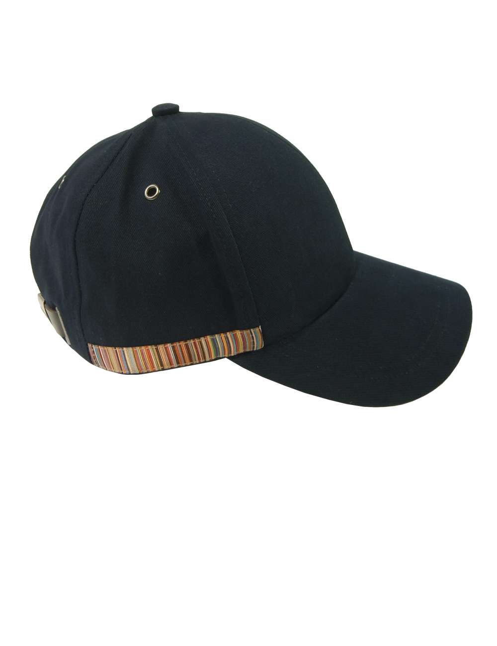 ポールスミス2022年コレクション。シンプルなスタイルに、さりげなくシグネチャーストライプがあしらわれたデザイン。カジュアルにも綺麗目にもコーディネートしやすいキャップです。