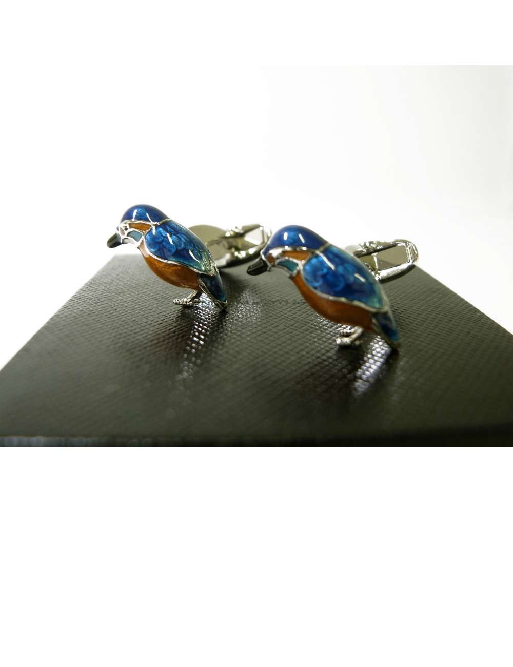 青い鳥キングフィッシャー(カワセミ)がそのままカフスボタンになりました。
