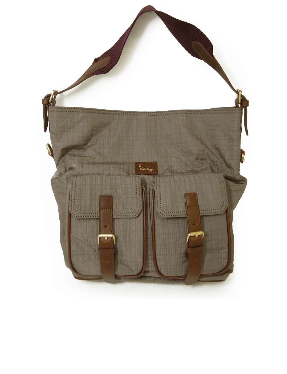 軽量なナイロンボディに、焦げ茶レザーのコンビ素材。