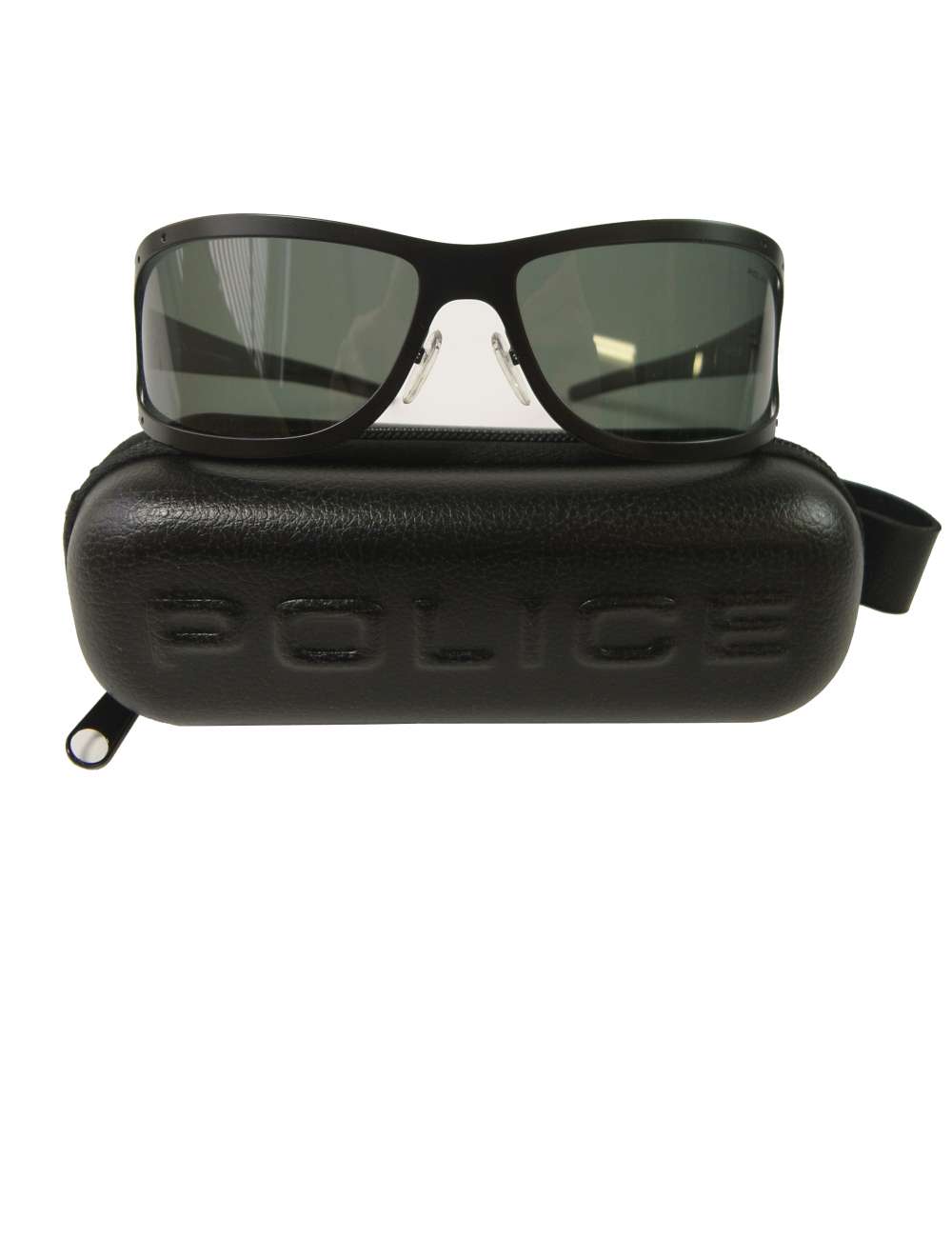 両サイドにPOLICEのPのイニシャルメタルプレートが光るクールなデザイン。