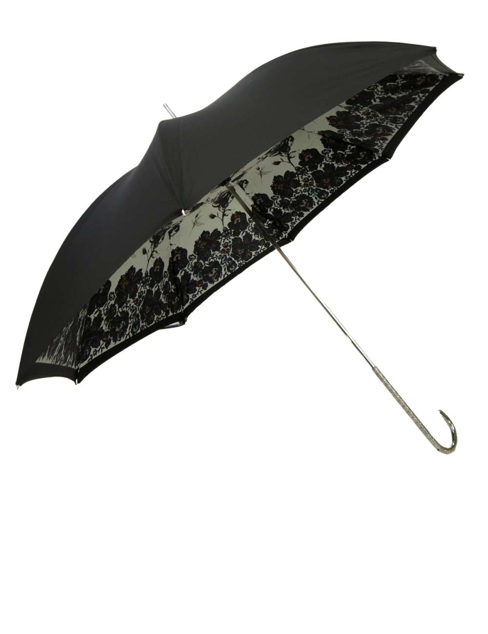 | カラー | パラソル部分 表側:ブラック/内側:フラワープリント ハンドル部分:シルバー+ブラックビジュー 石突き部分:シルバー |
