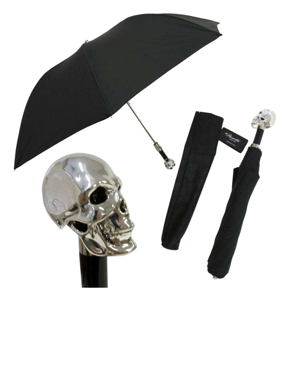 | カラー | パラソル部分:ブラックスカル柄 ハンドル部分:スカル(ドクロ)/ブラック+シルバー 金具部分:シルバー |