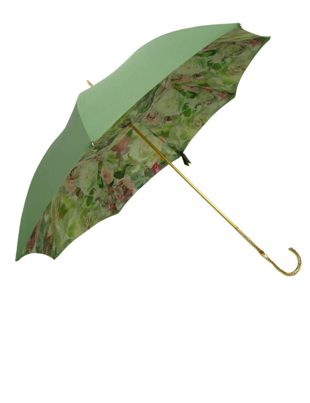 | カラー | パラソル部分 表側:グリーン/内側:フラワープリント ハンドル部分:ゴールド 石突き部分:ゴールド |
