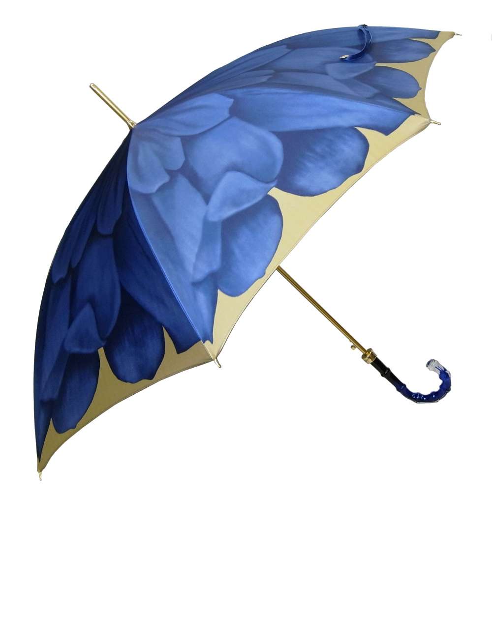 | カラー | パラソル部分:ロイヤルブルー+ゴールドダリヤフラワープリント ハンドル部分:ブルー+クリア |
