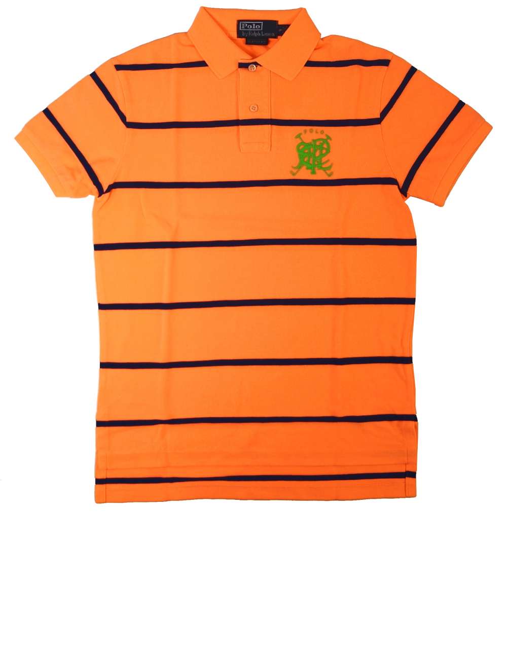 | カラー | B.MELON X(メロンオレンジ+ネイビーブルーのストライプ)/胸のロゴマーク刺繍:蛍光のライトグリーン |