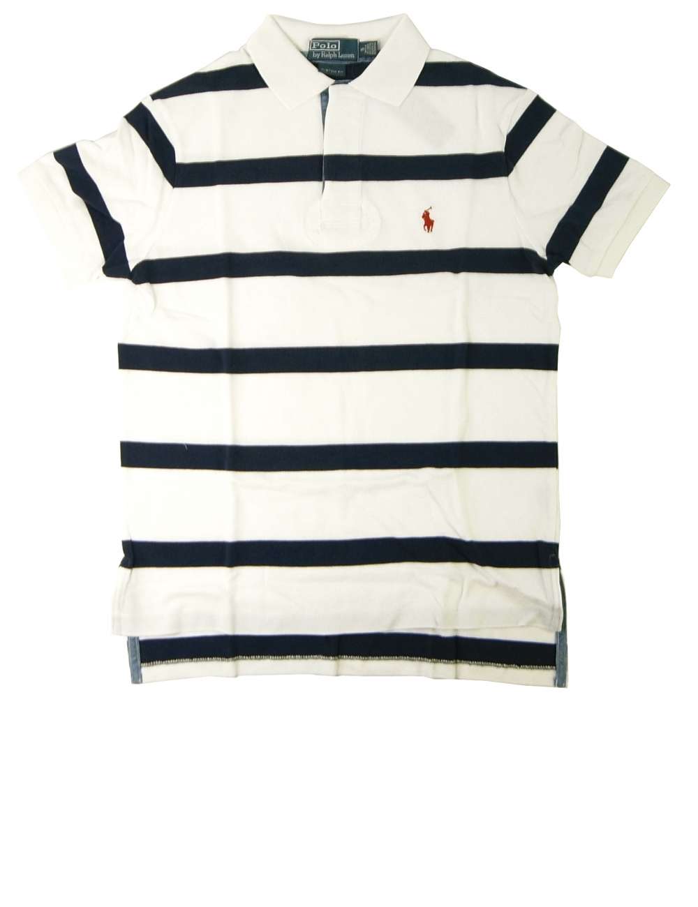 ホワイト×ネイビーのストライプデザインに赤のポロプレイヤーのロゴ刺繍がワンポイントに。