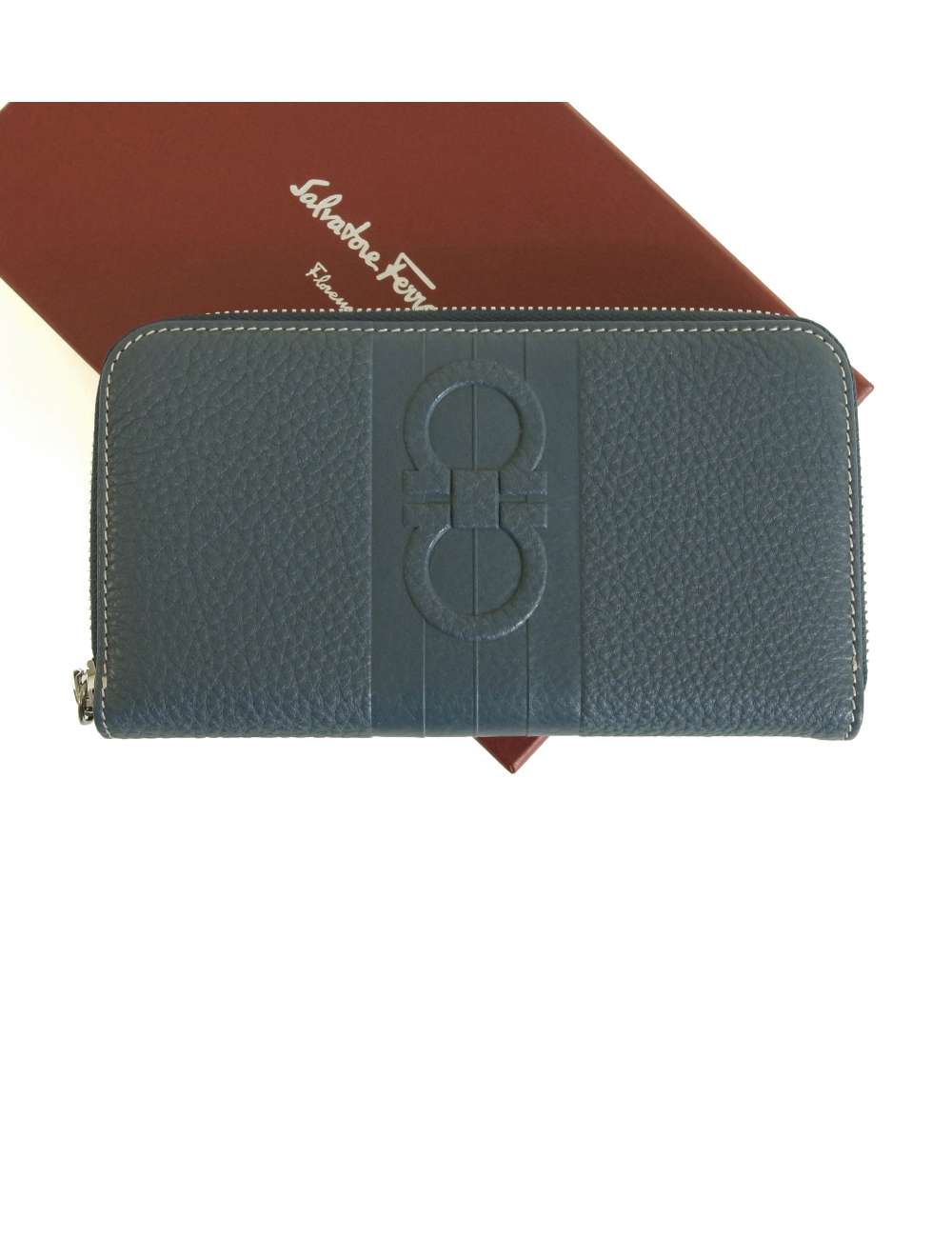 中央にフェラガモのブランドシンボル、ガンチーニのマークがエンボスデザインされています。
