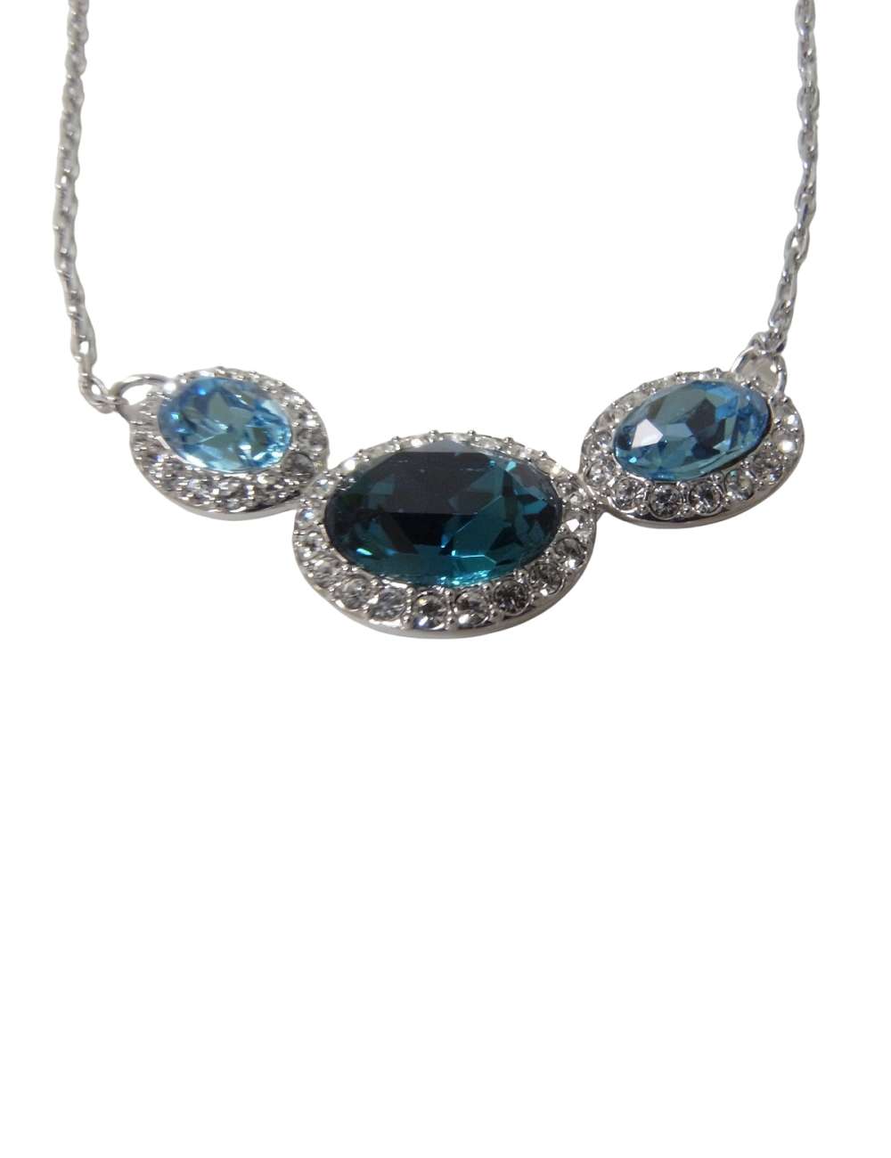 明るく鮮やかに輝くブルーのクリスタルを囲んで、クリアクリスタルがパヴェセッティングされています。
