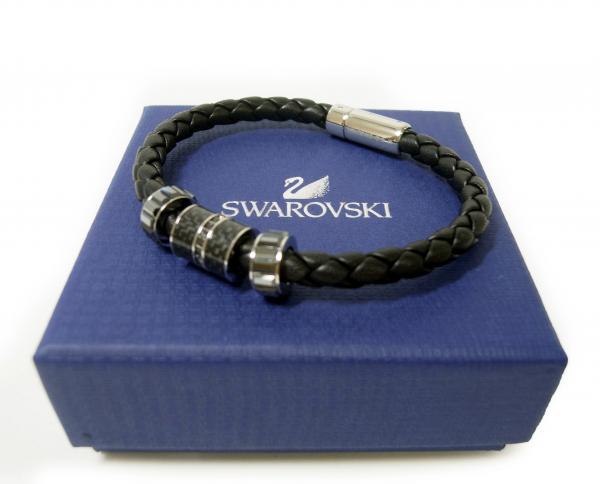 | 素材 | レザー/ロジウムコーティング/クリア・クリスタル+ブラックのPVDメタルをあしらった3個のビーズ |