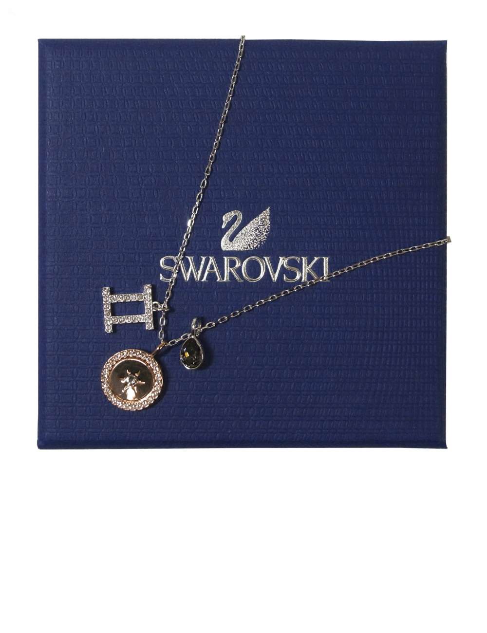 ふたご座を象ったペンダントです♪チェーンの一部が取り外しできるので、ローズゴールドメタルにクリアクリスタルが埋め込まれたメダリオンと、ロジウムにダークブルーのクリスタルが煌めくペアシェイプのモチーフは外すことも可能です。