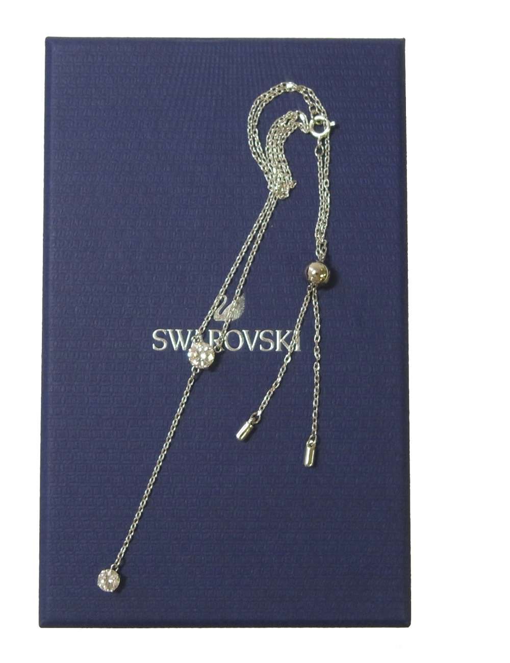 | 仕様 | <サイズ> チェーン長さ:約30〜45cm クリスタルパーツ:(上部)約縦0.5cm横0.5cm(下部)約縦0.4cm横0.4cm Y字の下の部分の長さ:約6cm <仕様> ☆スワロフスキーのBOXが付属しています。 |