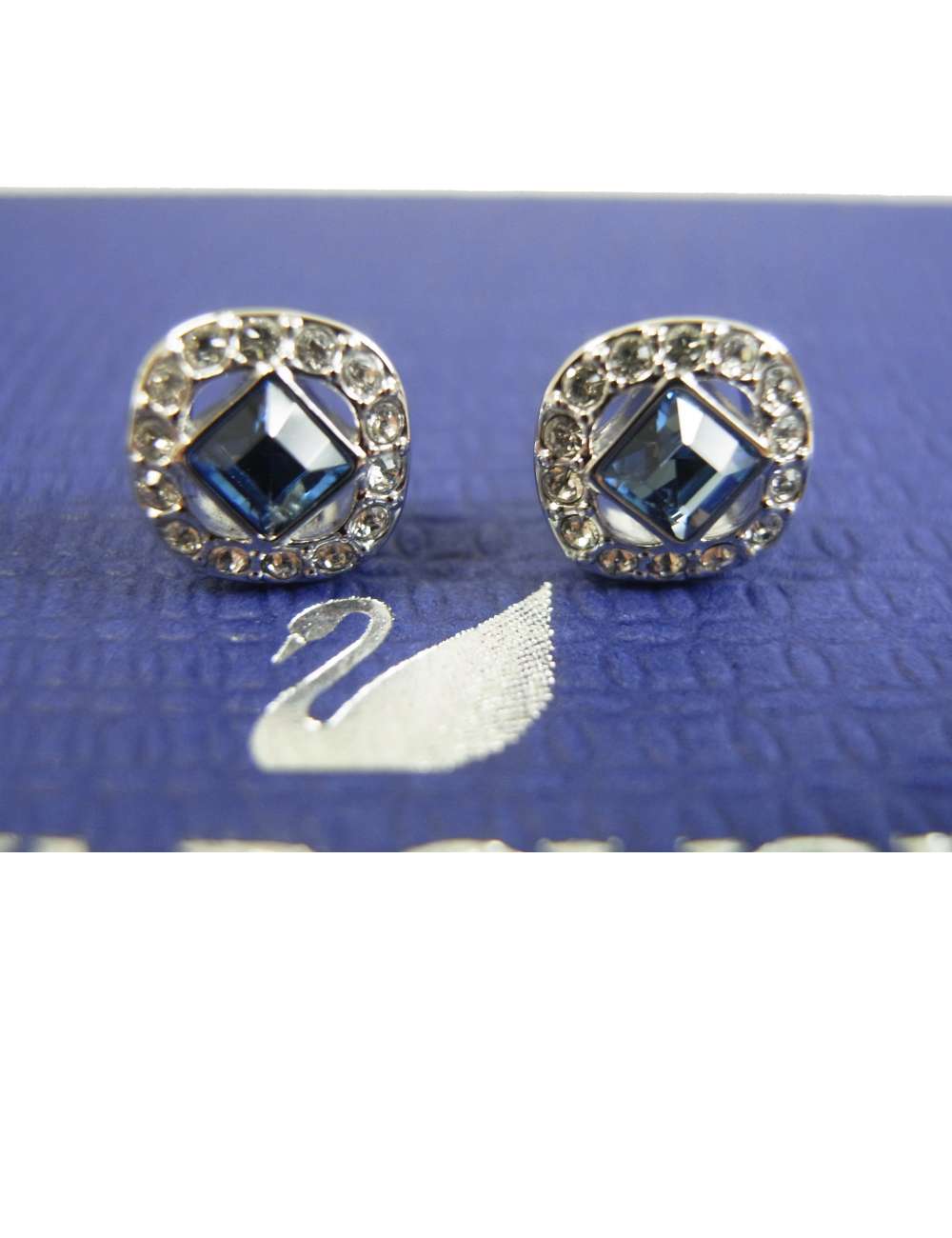 スクエアシェイプのブルークリスタルを、柔らかな煌めきのパヴェクリスタルで包んだデザイン。