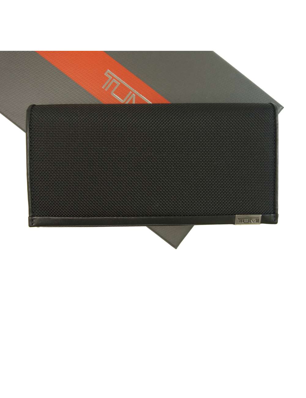 TUMIのロゴが刻印された、シルバーメタルプレートのアクセント。
