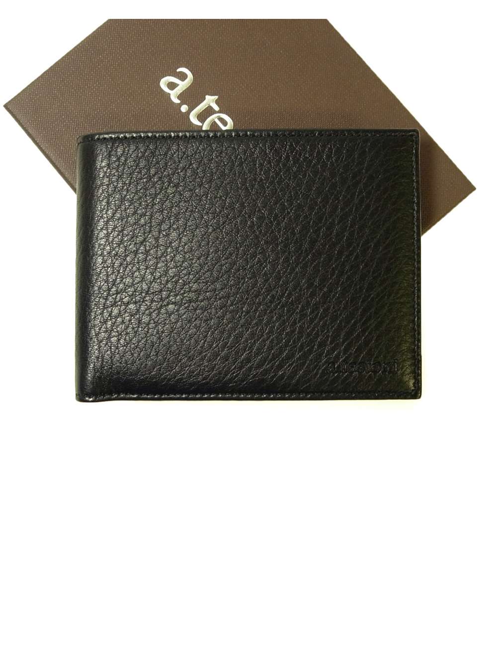 手にしっとりとなじむ高級鹿革で作られた小銭入れ付き財布です。a.testoniの刻印がさりげなく型押しされています。洗練されたクールな印象のブラック。