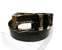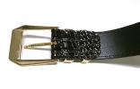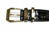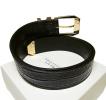 艶やかなクロコの型押しがエレガントなブラックレザーに鏡面仕上げのゴールドバックル。