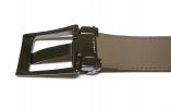 しなやかな型押しの牛革ベルトに鏡面加工のガンメタルバックル。