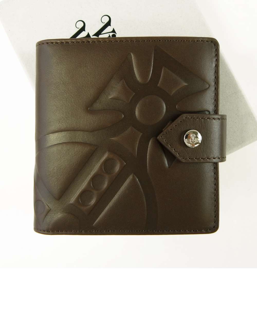 しなやかな質感、味のある深い焦げ茶のレザーに、 ヴィヴィアンウエストウッドの象徴オーブのエンボスデザイン。